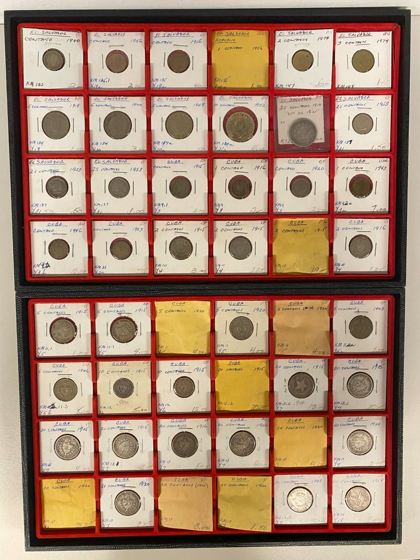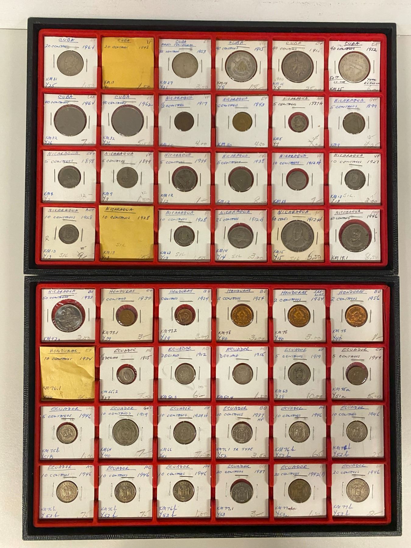 CENTRAL AMERICA: LOT of approximately 169 coins, including 40 from Ecuador, 5 silver; 17 from Nicaragua (8 silver); 6 from Honduras; 42 from Cuba (22 silver); 14 from El Salvador (4 silver); 17 from Dominican Republic (10 silver); and 33 from Cost Rica (12 silver); retail value $900, lot of approximately 169 pieces.