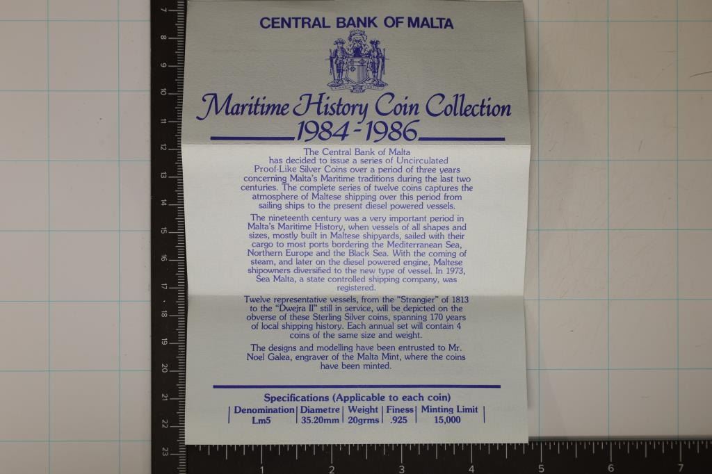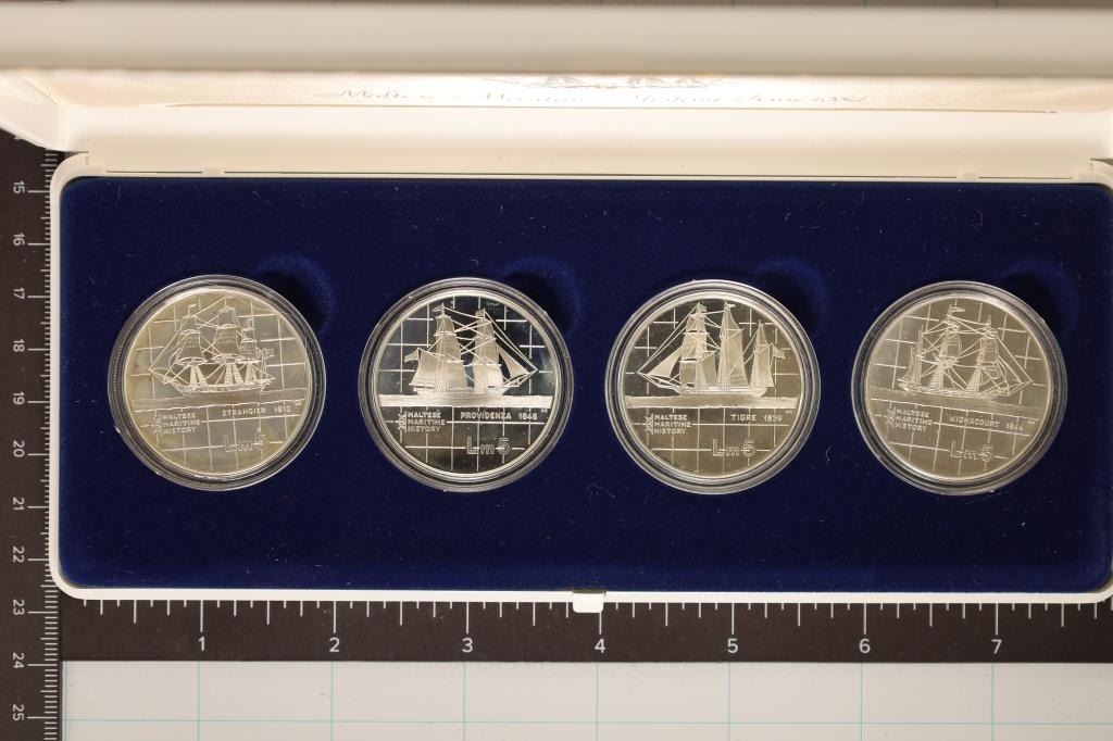 COIN SET "MARITIME HISTORY COIN COLLECTION", EACH COIN CONTAINS: 20 GRAMS OF STERLING SILVER LIMITED MINTAGE OF 15,000, IN ORIGINAL MINT PACKAGING WITH CERTIFICATE AND INFO SHEET. 2.37865 OZ. ASW. EACH COIN SHOWS A