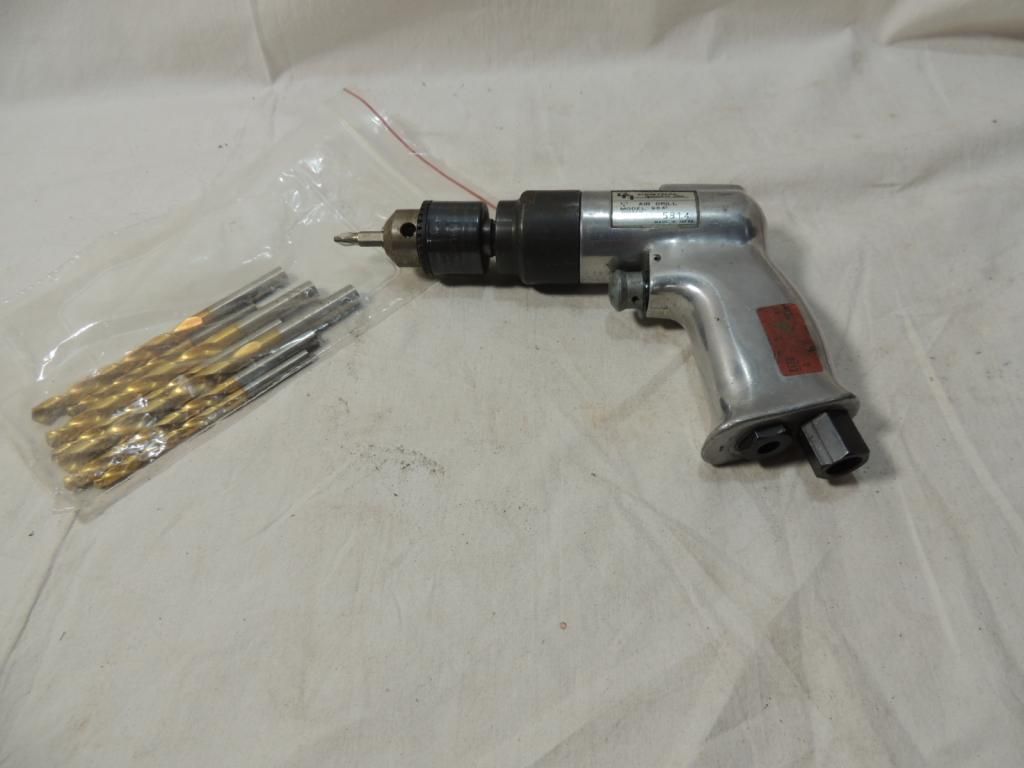 CENTRAL PNEUMATIC AIR DRILL WITH DRILL BITS. AS SHOWN SEE PHOTO FOR MORE DETAILS.
