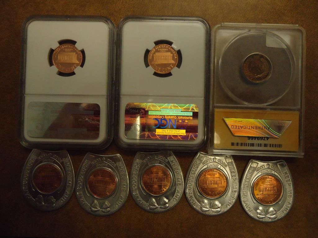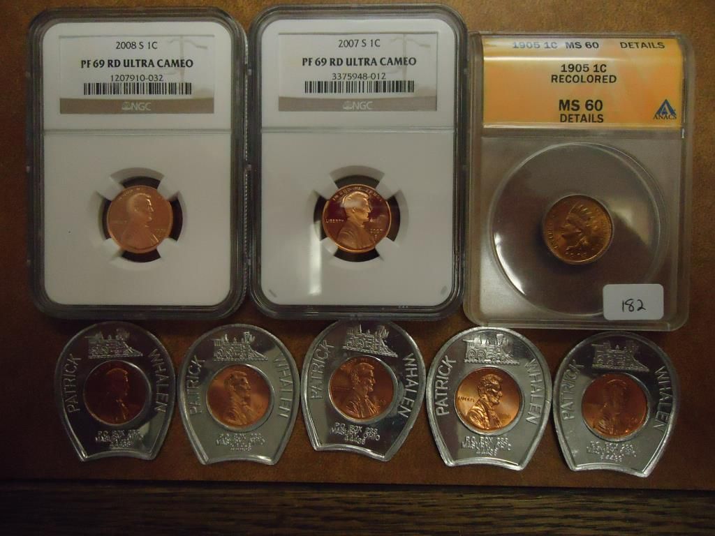 1905 INDIAN HEAD CENT ANACS MS60 DETAILS, 2007-S LINCOLN CENT NGC PF69 RD ULTRA CAMEO, 2008-S LINCOLN CENT NGC PF69 RD ULTRA CAMEO AND 5-1998-D ENCASED LINCOLN CENTS