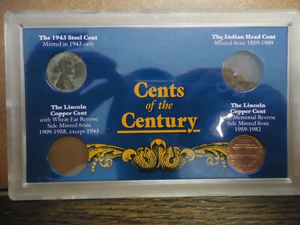 CONTAINS: INDIAN HEAD CENT, WHEAT CENT, STEEL CENT AND MEMORIAL REVERSE CENT (AS SHOWN)