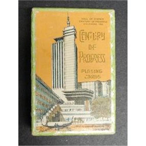 THIS IS LOVELY DECK OF CARDS, ISSUED TO MARK THE 1933 CENTURY OF PROGRESS HALL OF SCIENCE CHICAGO WORLDS FAIR, BEAUTIFUL HIGH QUALITY GRAPHICS PLAYING CARDS, SEEM TO BE IN EXCELLENT USED CONDITION, as per images - the set comes in excellent condition,US Buyer to pay 7.00 for shipping plus insurance.THANKS.