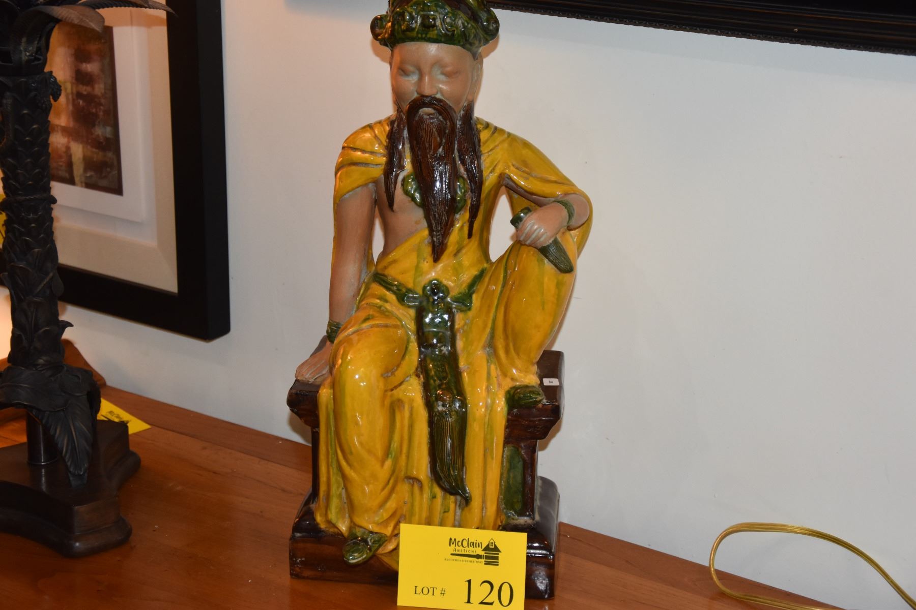 CERAMIC CHINESE SITTING OFFICIAL, 3 TONE GLAZE (20 1/2")