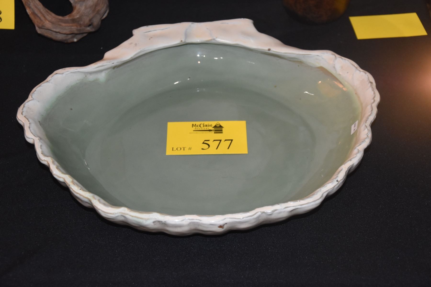 CERAMIC CLAM SHELL IKEBANA VESSEL, TAISHO-SHOWA 20TH CENTURY; CHOP SIGNED (17" X 16")