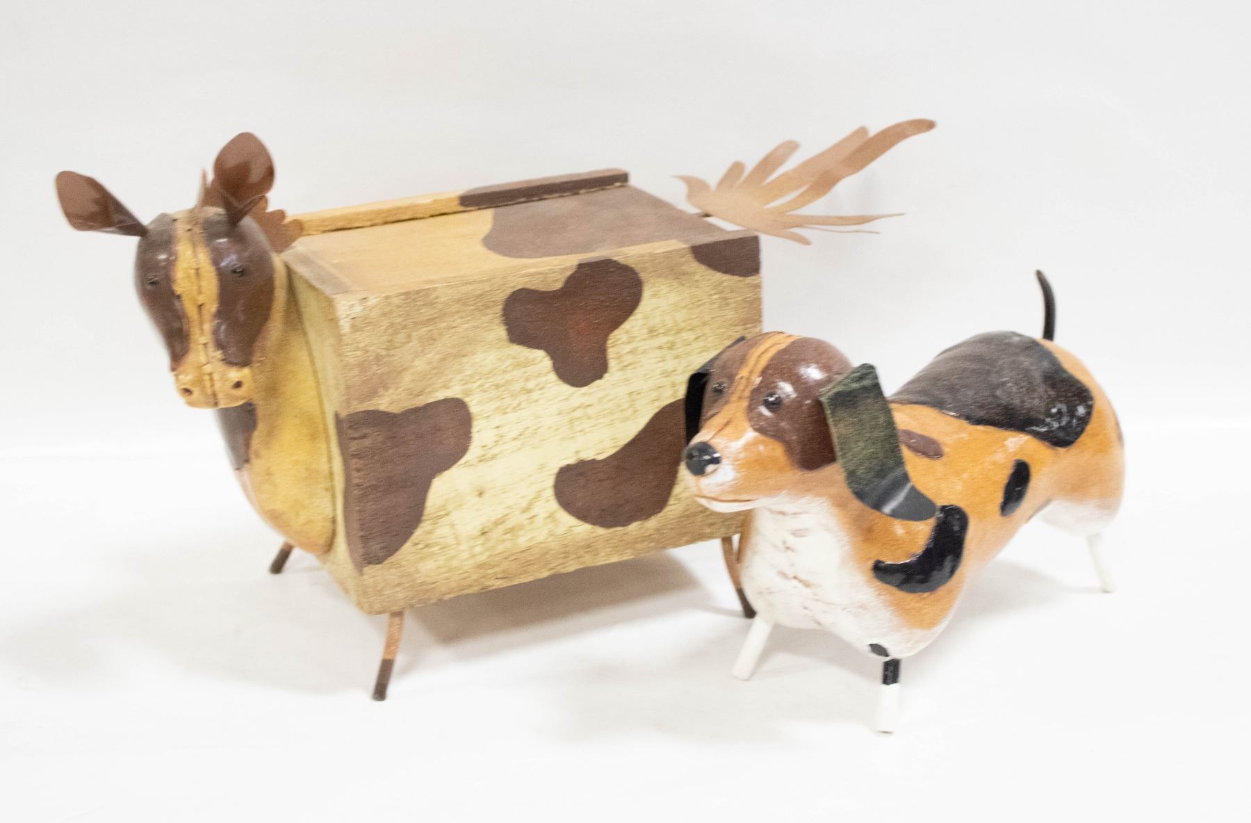 CERAMIC DOG 8" 5" AND WOODEN HORSE 7.5" X 11"