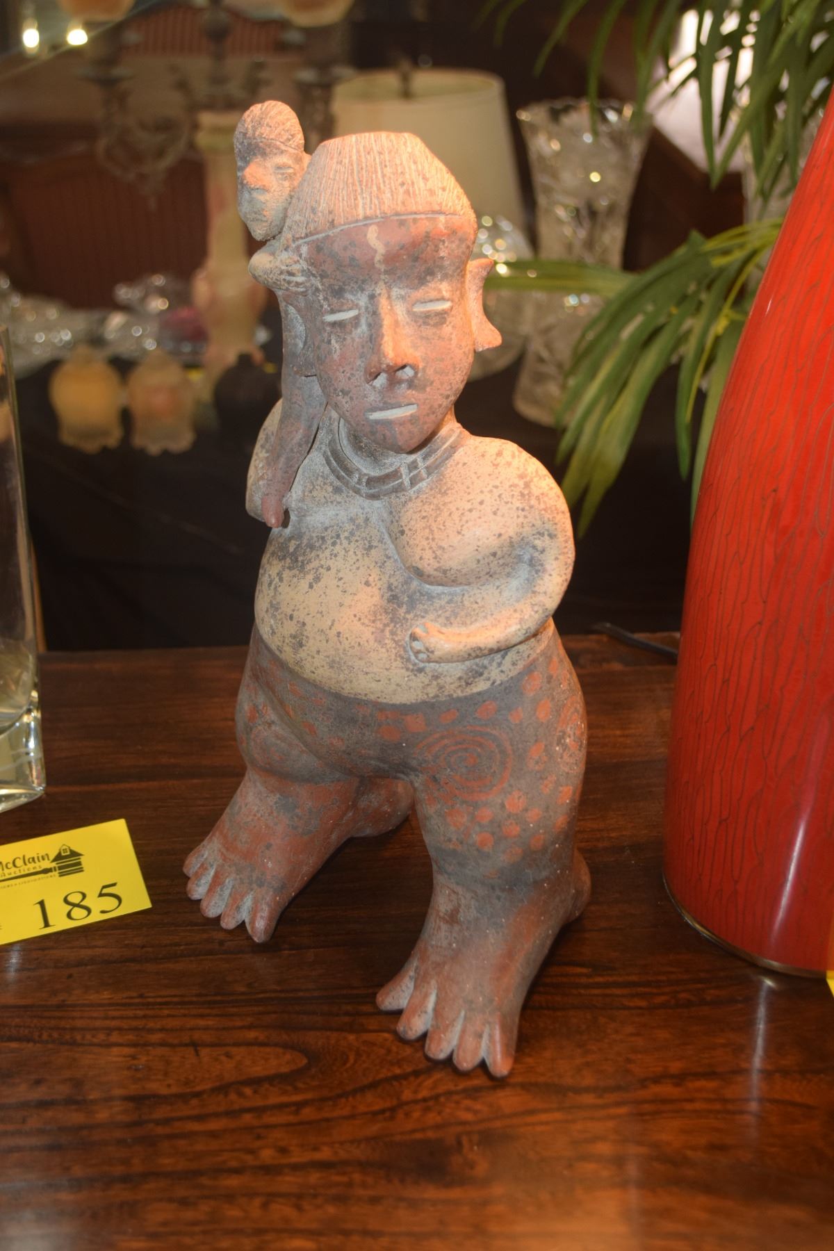 CERAMIC FERTILITY FIGURE & CARVED WOOD FIGURE (2 PCS)