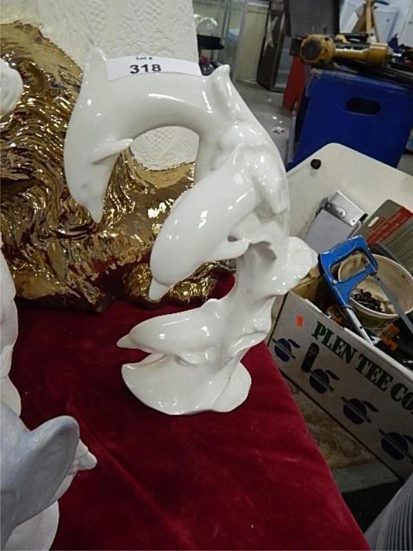 CERAMIC FIGURE - GLAZED - WHITE DOLPHINS