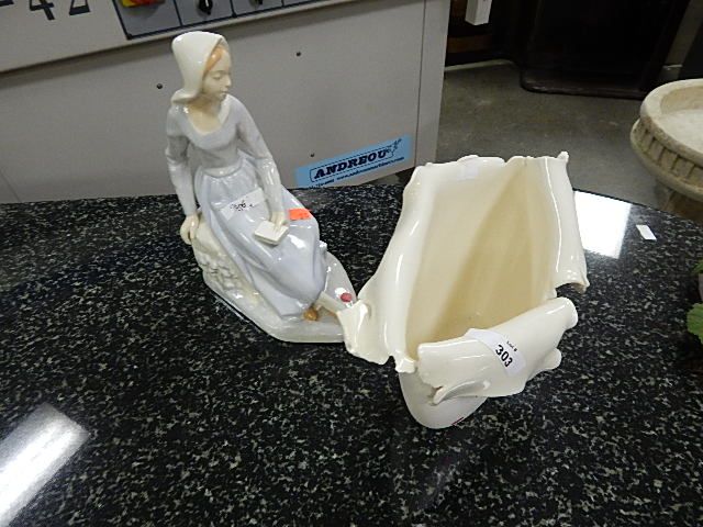 CERAMIC FIGURE & VASE = 3PC TOTAL