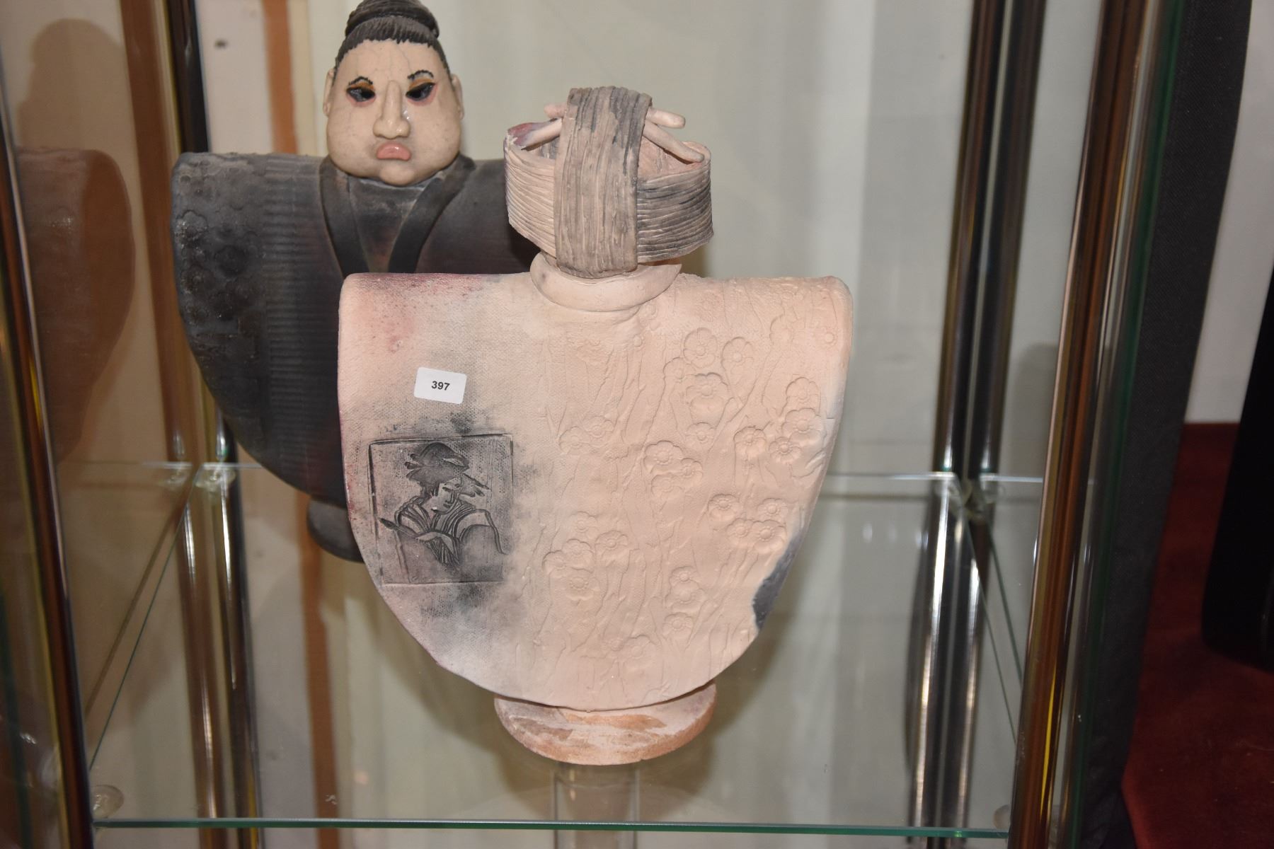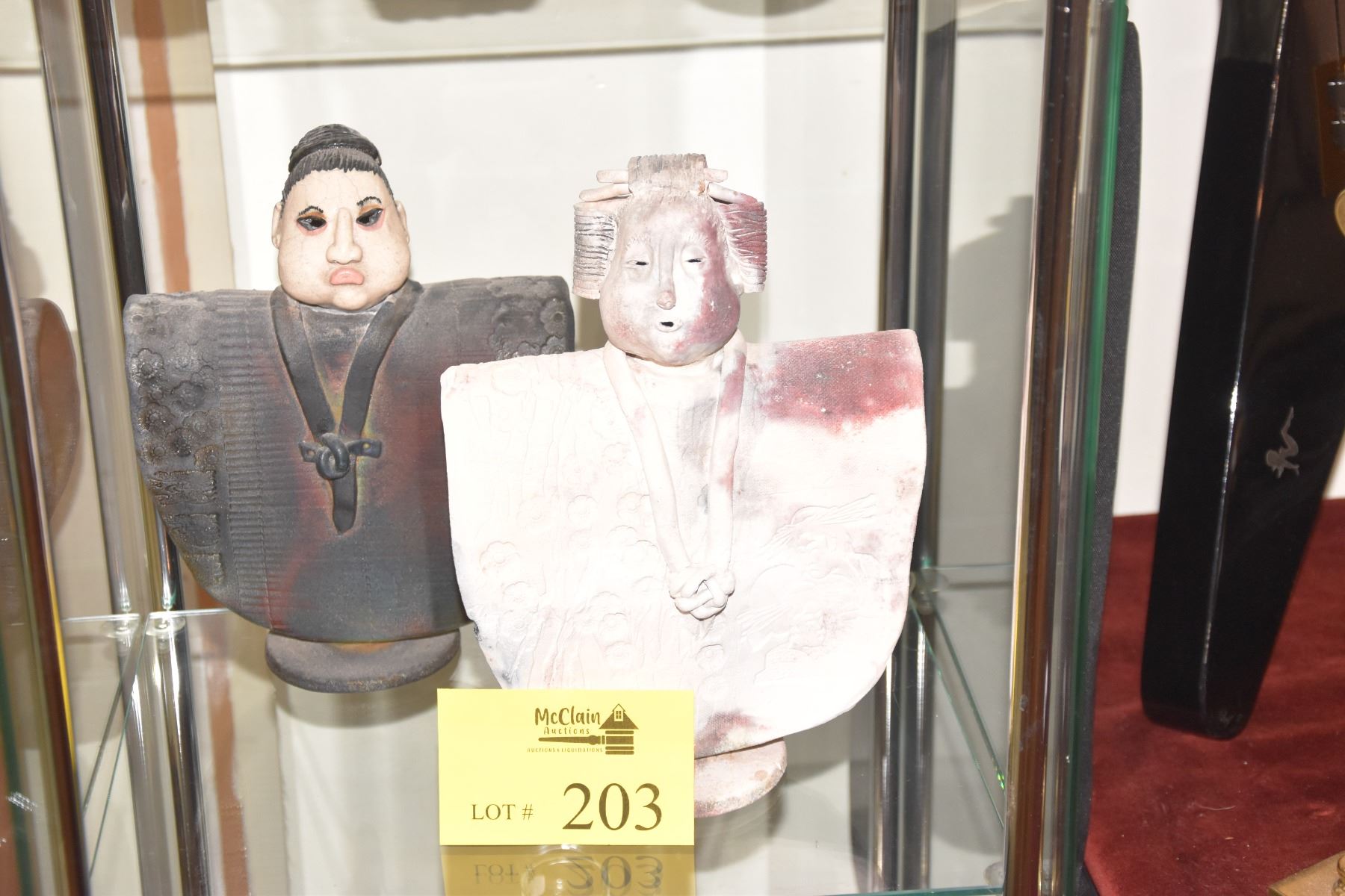 CERAMIC FIGURES, "MUSASHI & GEISHA" BY MARGARET TACUB (2 PCS)