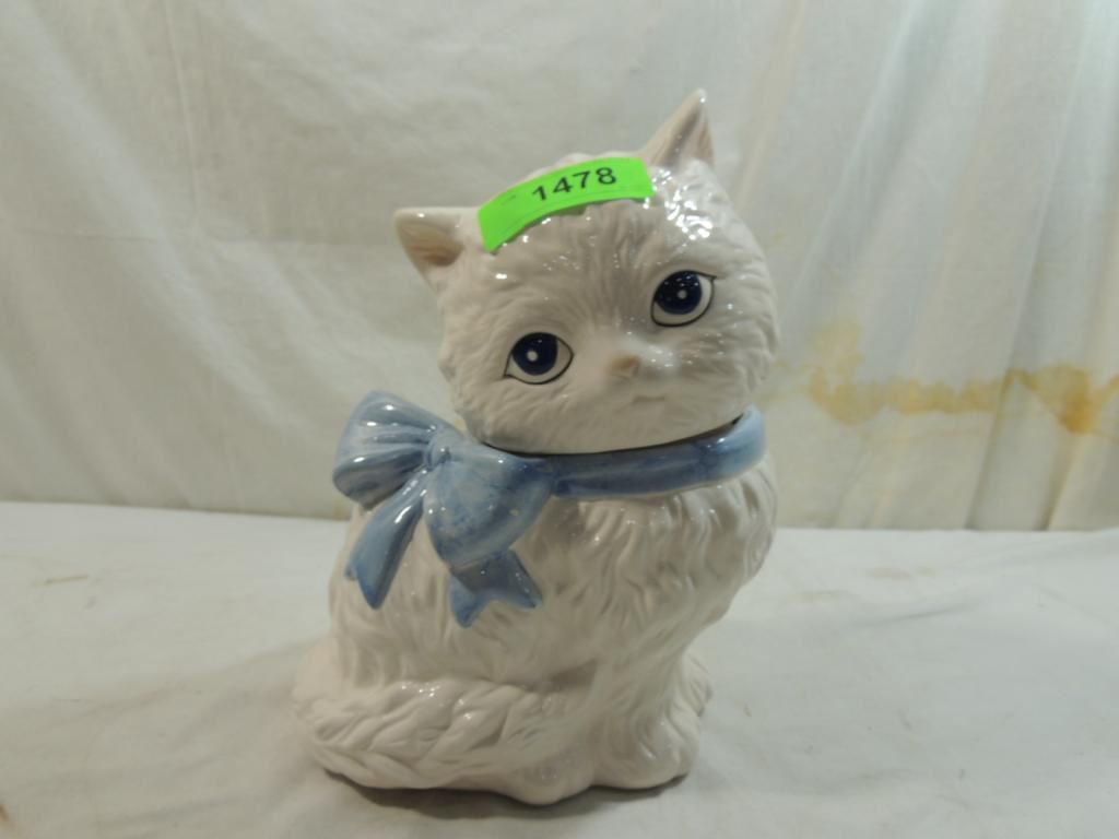 WHITE CERAMIC KITTEN COOKIE JAR, DECORATIVE JAR, KITTEN, CAT COOKIE JAR, AS SHOW SEE PHOTO FOR MORE DETAILS.