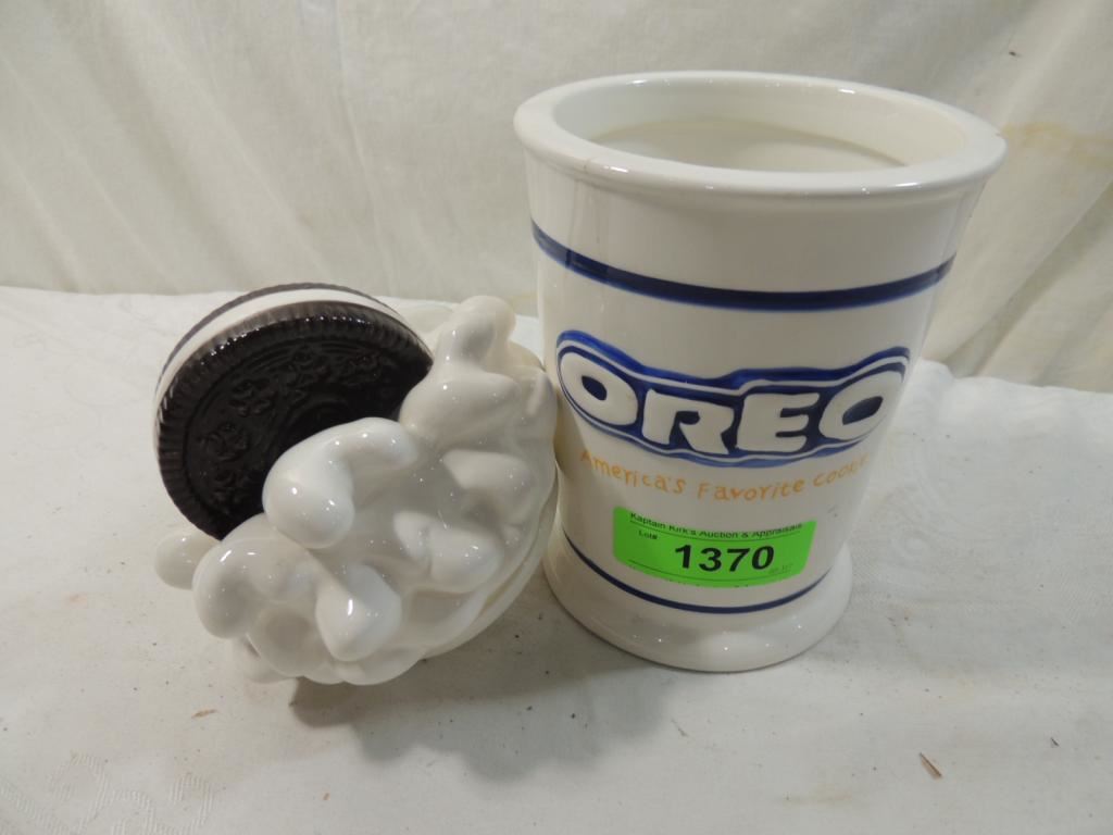 AMERICAS FAVORITE COOKIE, CERAMIC COOKIE JAR, OREO COOKIE & MILK COOKIE JAR AS SHOWN SEE PHOTO FOR MORE DETAILS.