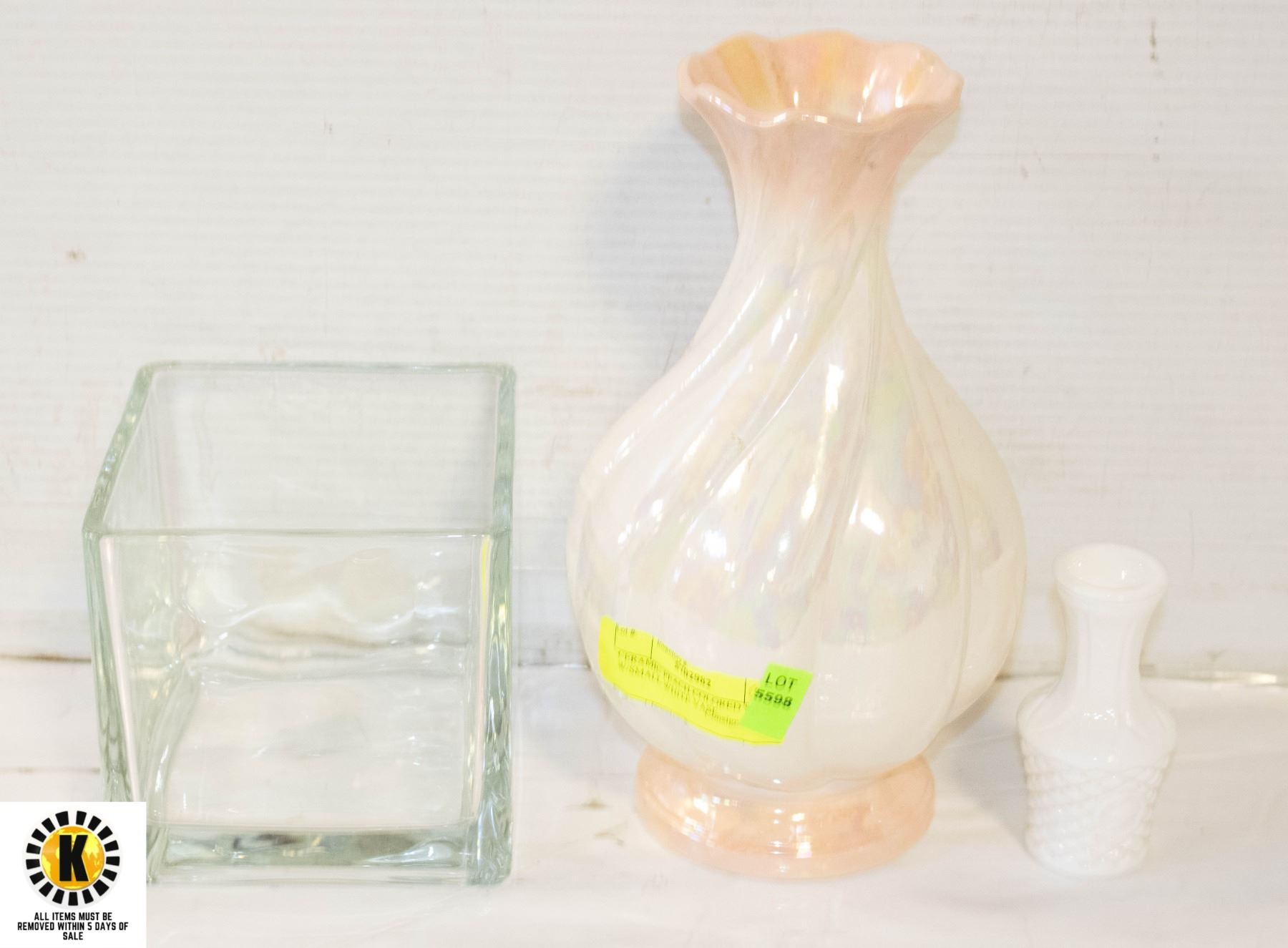 CERAMIC PEACH COLORED VASE W/SMALL WHITE VASE