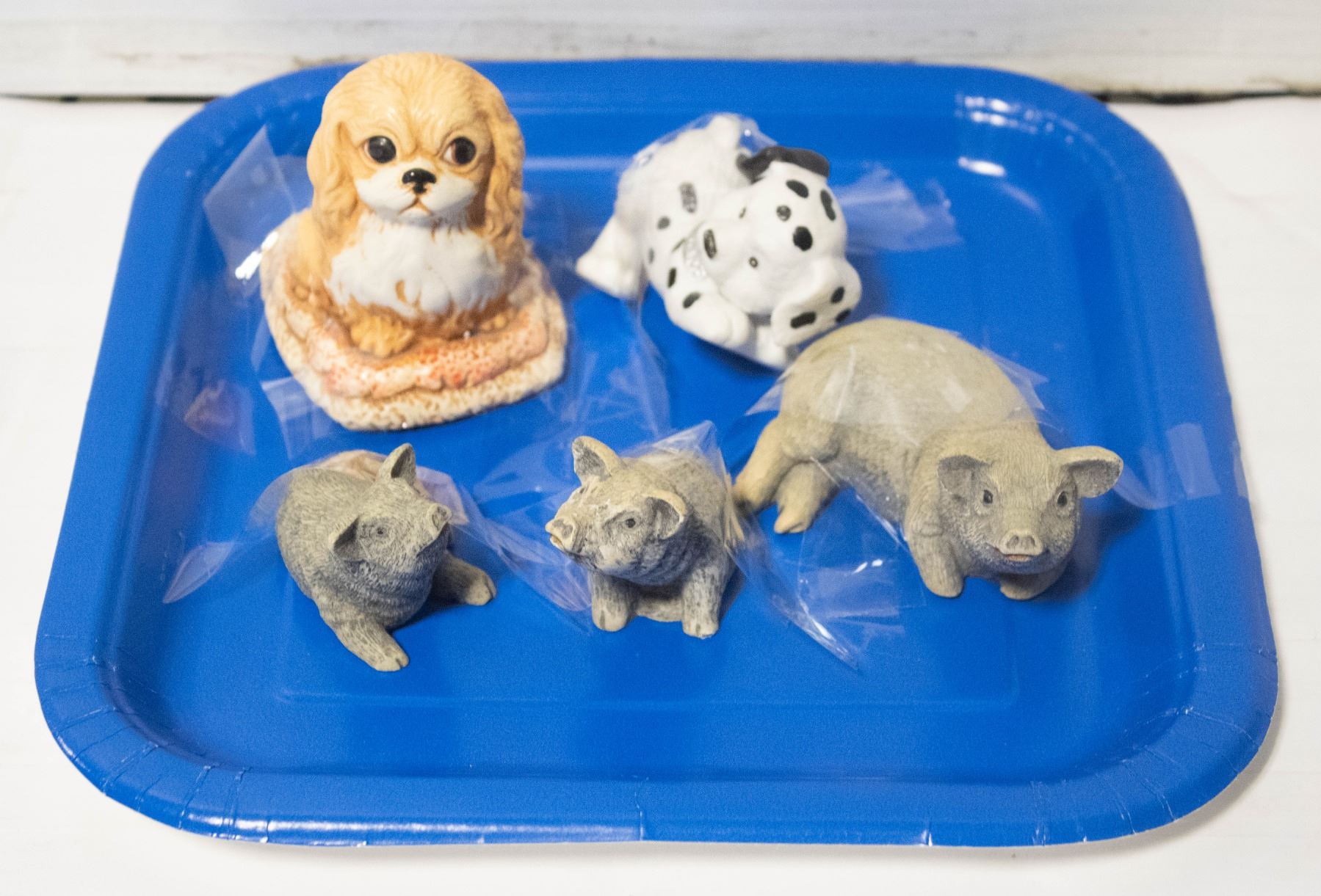 CERAMIC PIECES SET (3 PIGS ,2 PUPS)
