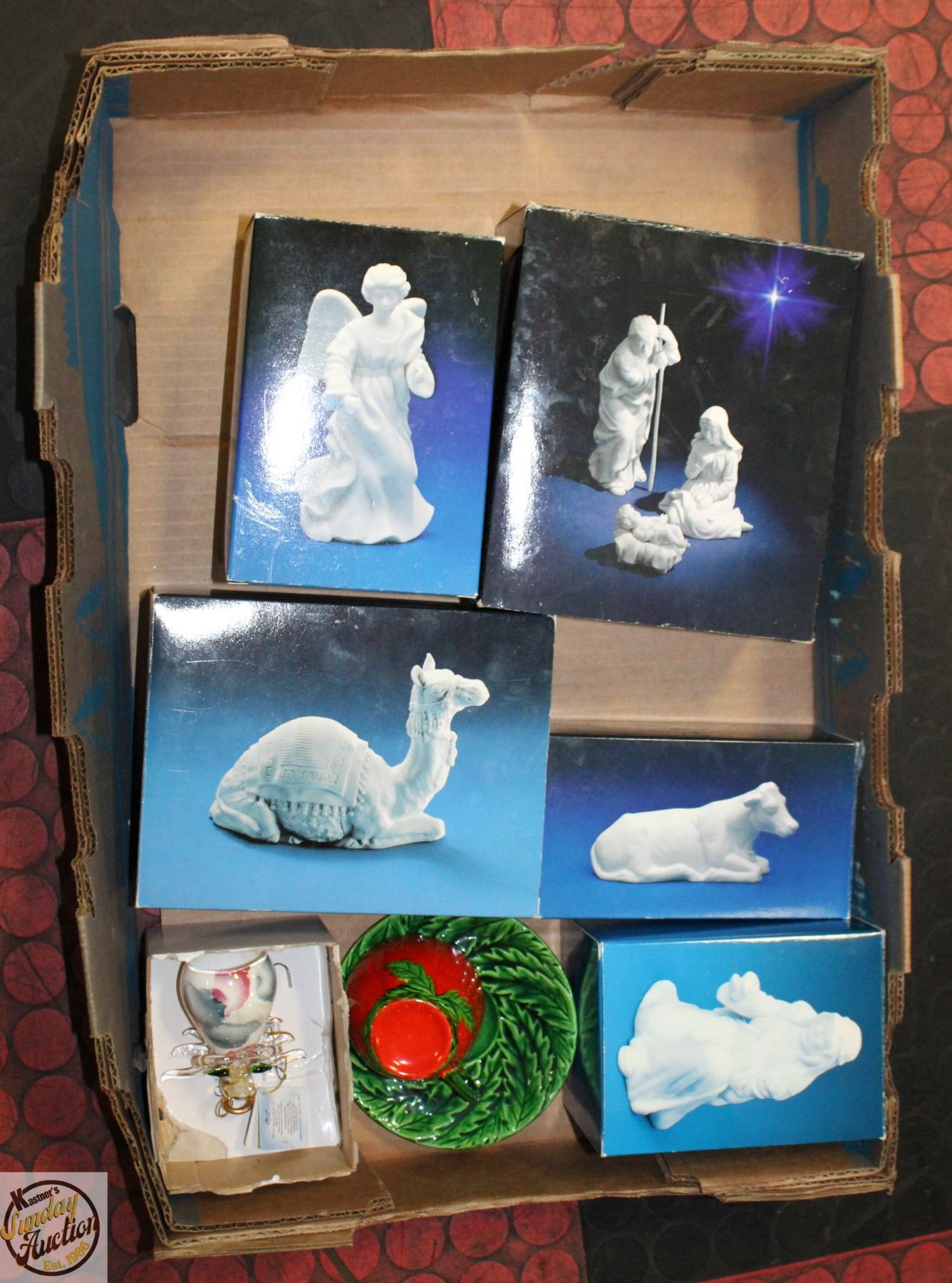 CERAMIC RED+GREEN TEA CUP, NATIVITY FIGURES+ANGELS