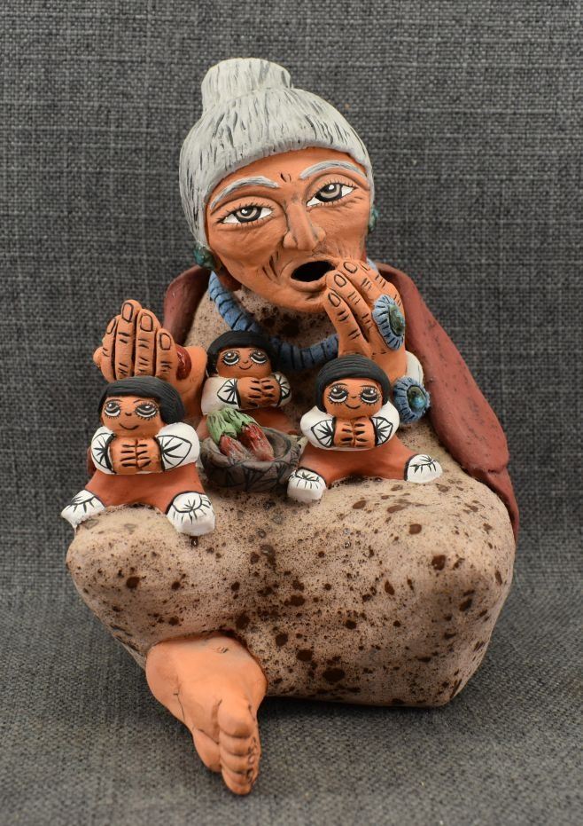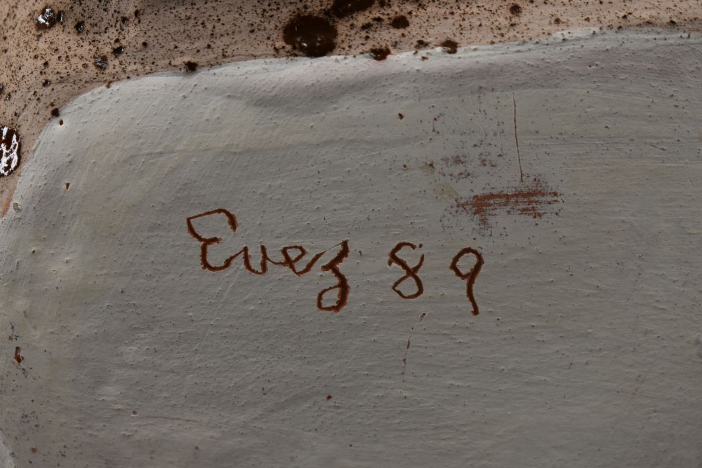 1989 hand made and painted story teller signed Evez 8.5" x 5.5" x 6.25"