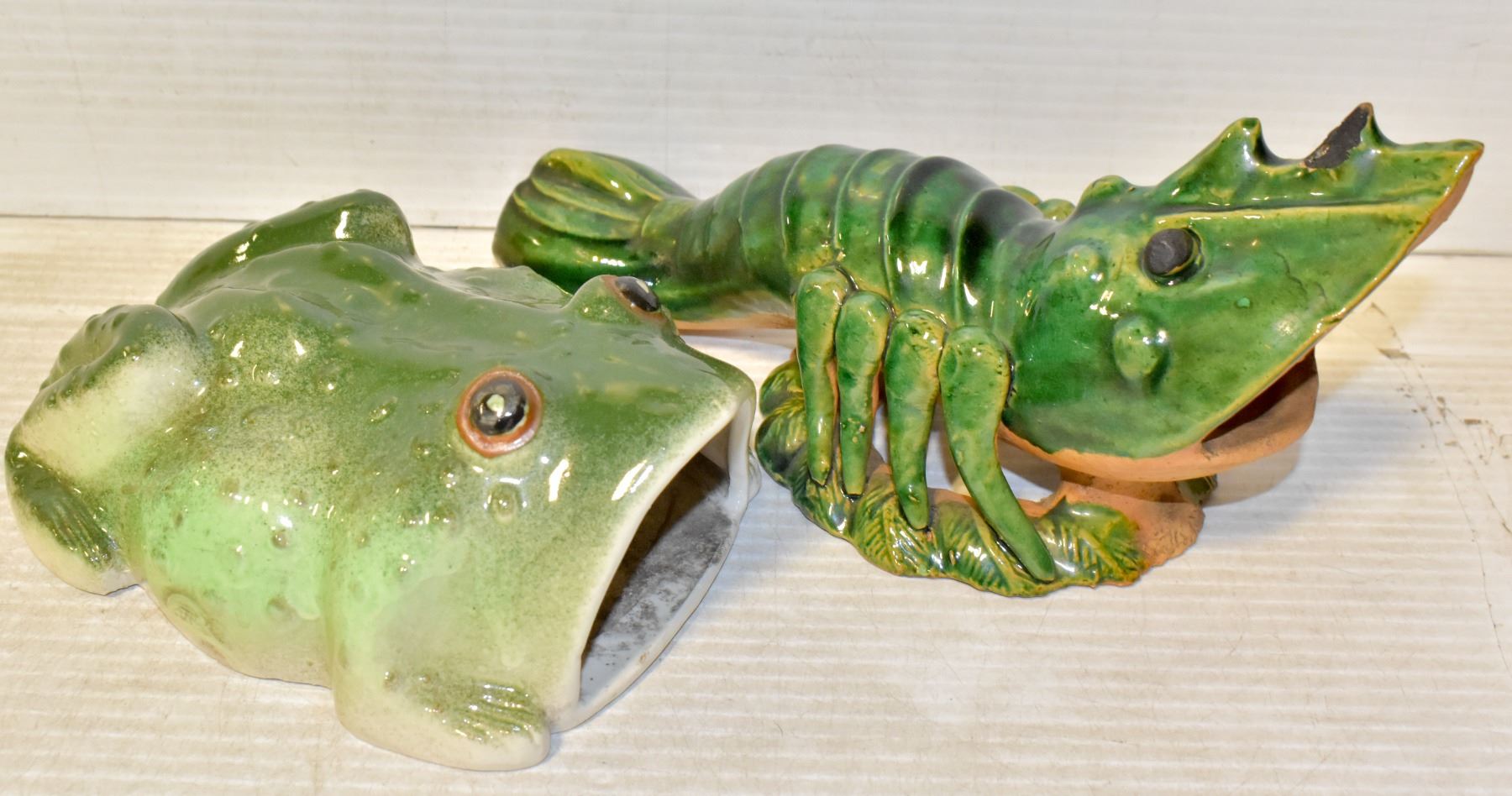 GREEN GLAZED TOAD AND LOBSTER , 9 INCHES LONG EACH