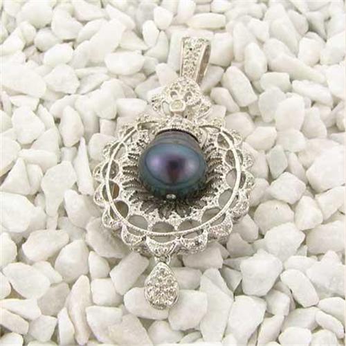NEW , GENUINE 0.33ctw BLACK PEARL & DIAMOND PENDANT IN 14KT WHITE GOLD (JUST PENDANT DOES NOT INCLUDE CHAIN)