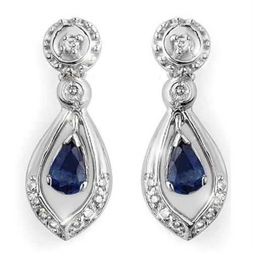 An elegant style.A prong-set, round diamond is stationed at the post, with diamond links forming a dazzling drop below. The final drop stuns with a center, prong-set, pear-shaped blue sapphire gemstone, surrounded by more breathtaking, bead-set diamonds.<BR><BR>Known as a pledge of trust and loyalty, this September birthstone has long been a popular