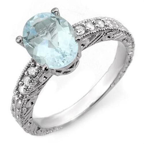 2.43 ctw DIAMOND & AQUAMARINE LADIES RING IN 14K WHITE GOLD