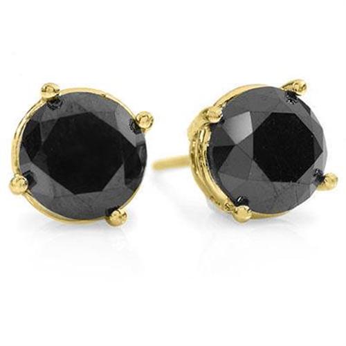 GENUINE SOLITAIRE 3.0 ctw BLACK DIAMOND STUD EARRINGS SET IN 14KT YELLOW GOLD