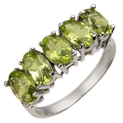 A classic elegant. This classic ring showcases five beautifully oval cut peridot is prong set atop a sculpted trellis setting. Finely crafted in lustrous white gold band.<BR><BR>Ancient Egyptians believed that this August birthstone has magical and healing powers. It is also known as a 16th wedding anniversary gift.