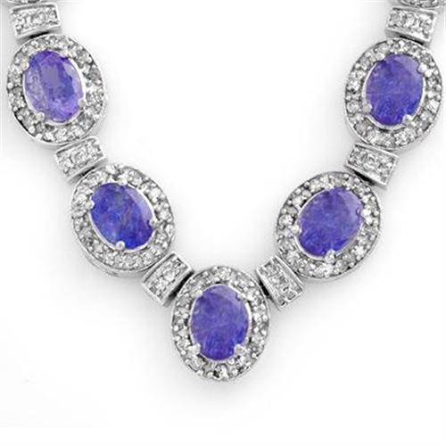GENUINE 38.70 ctw TANZANITE & DIAMOND NECKLACE