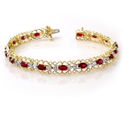 GENUINE 4.22 ctw RUBY & DIAMOND BRACELET IN 10K YELLOW GOLD