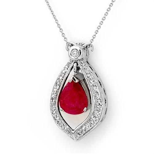 GENUINE 4.40 ctw RUBY & DIAMOND VINTAGE STYLE NECKLACE IN 14K WHITE GOLD