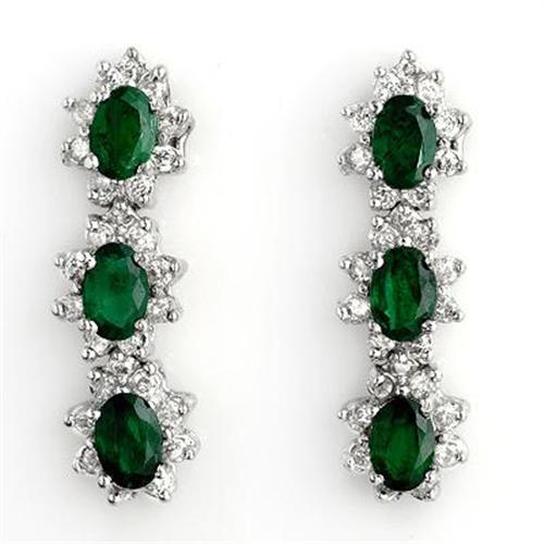 GENUINE 4.88 ctw DIAMOND & EMERALD LADIES EARRINGS 14K WHITE GOLD