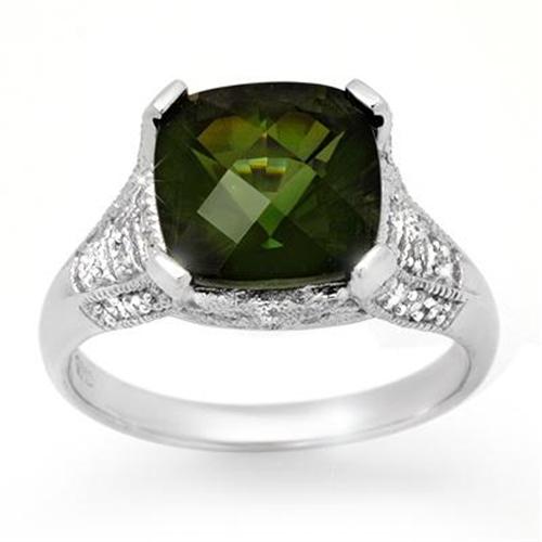 CERTIFIED 5.05ctw GREEN TOURMALINE & DIAMOND RING IN 14KT WHITE GOLD