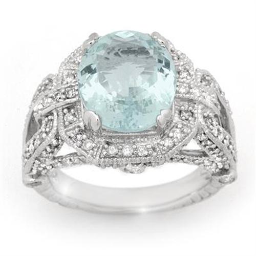 VINTAGE STYLE 6.50 ctw AQUAMARINE & DIAMOND RING IN 14KT WHITE GOLD