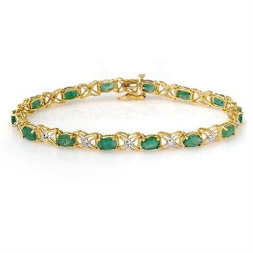 GENUINE 6.85ctw EMERALD & DIAMOND BRACELET 14KT YELLOW GOLD
