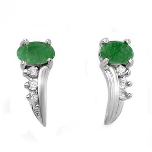 GENUINE .60ctw EMERALD & DIAMOND EARRINGS 10KT WHITE GOLD