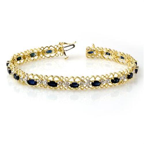 GENUINE 7.02 ctw BLUE SAPPHIRE & DIAMOND BRACELET IN 10KT YELLOW GOLD