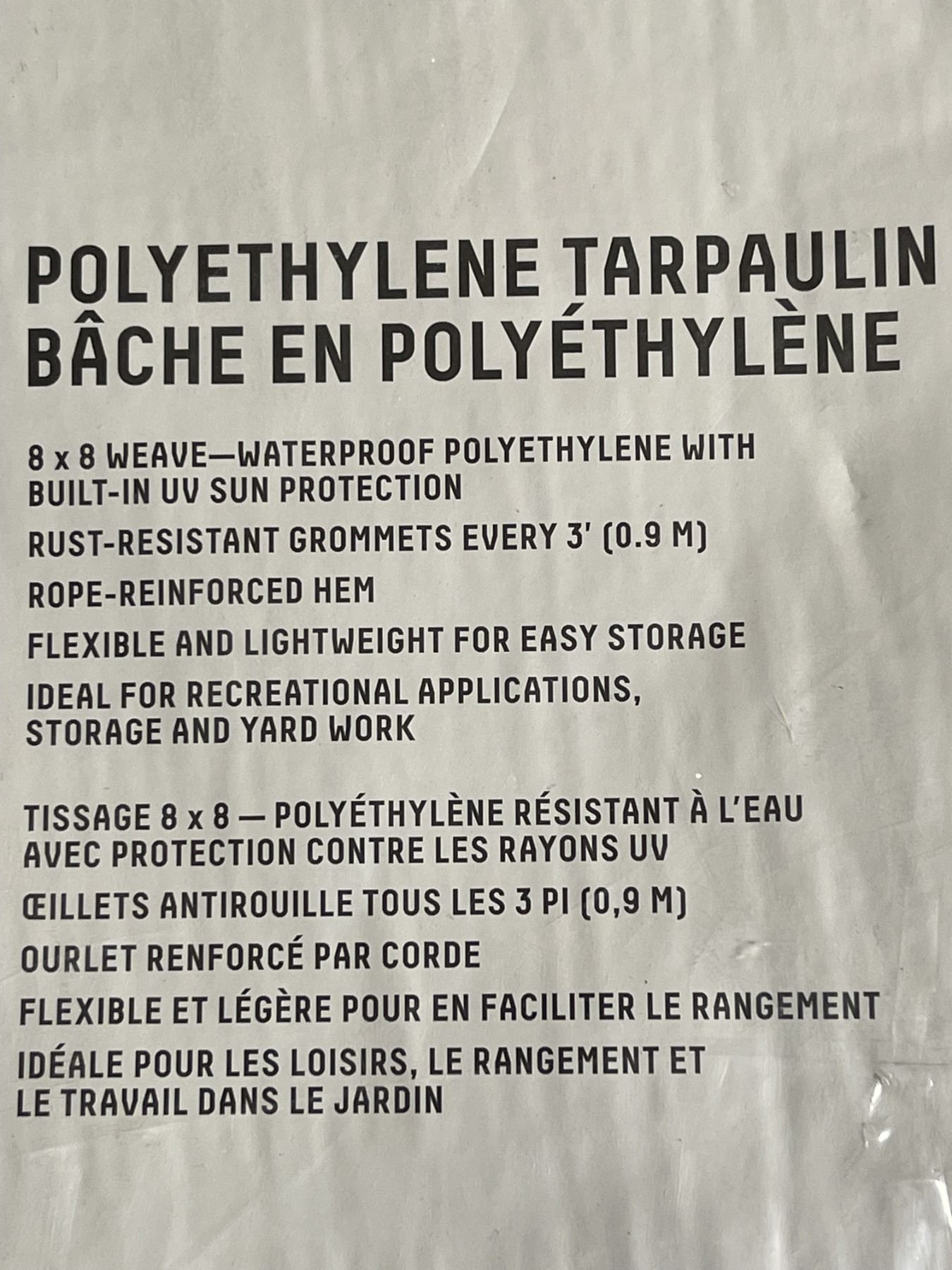 - 8 x 8 Weave - Waterproof polyethylene with built-in UV sun protection