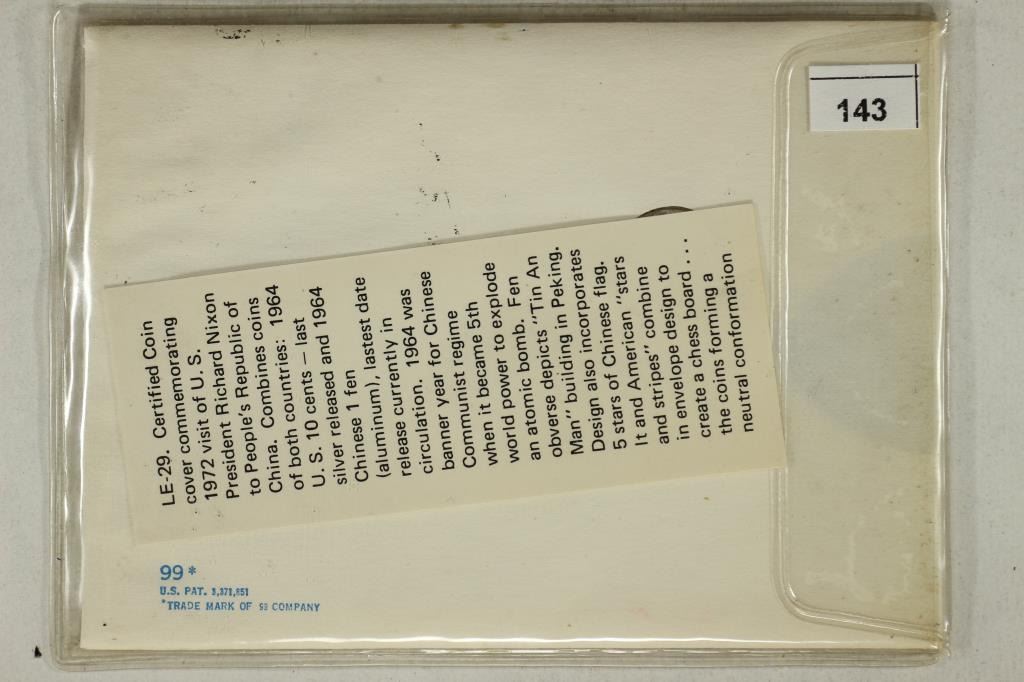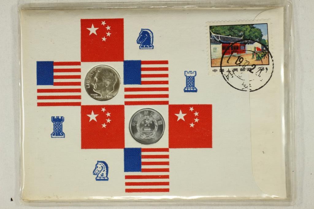 VISIT OF PRESIDENT RICHARD NIXON TO CHINA, CONTAINS: 1964 SILVER ROOSEVELT DIME AND 1964 CHINESE 1 FEN