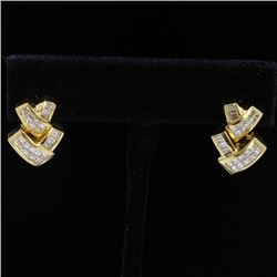 18K Yellow Gold And Diamond Earring Princess Shape Diamond(invisible Setting)- 1.36ct baguette Shape