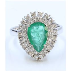 14K WHITE GOLD RING 5.51GRAM DIAMOND 0.64CT EMERALD 1.60CT PEAR SHAPE