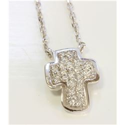 14K ROSE GOLD CROSS PENDANT WITH CHAIN :2.5g/Diamond:0.19ct