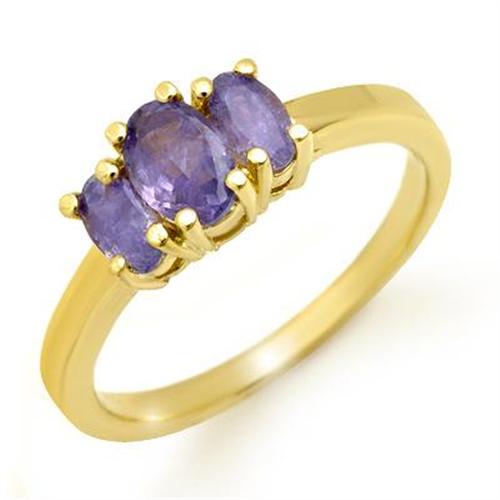 GENUINE THREE-STONE 1.0 ctw TANZANITE RING IN 10KT YELLOW GOLD
