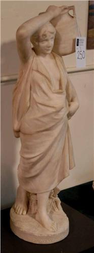 "CESARE LAPINI ALABASTER FIGURE ""Portatrice d'Acqua"" signed and dated 1897 29"" high, one finger repaired "