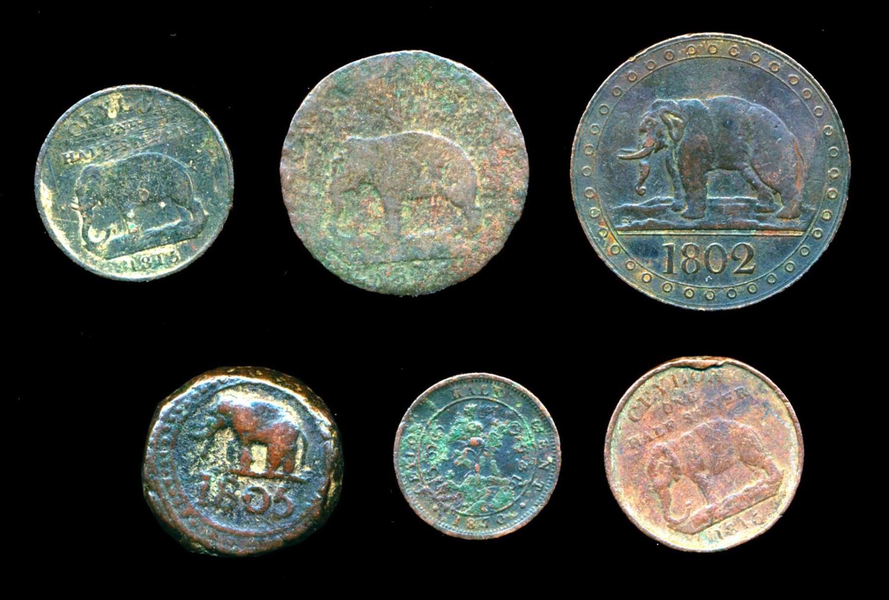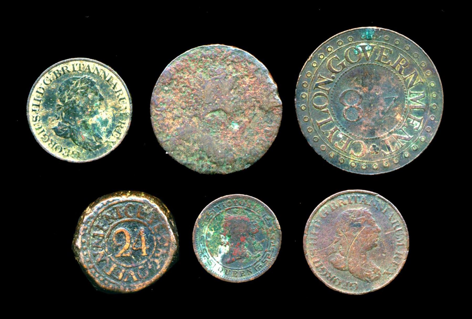 CEYLON 1815-1870. A Lot of 6 Copper Coins Good-Very Fine