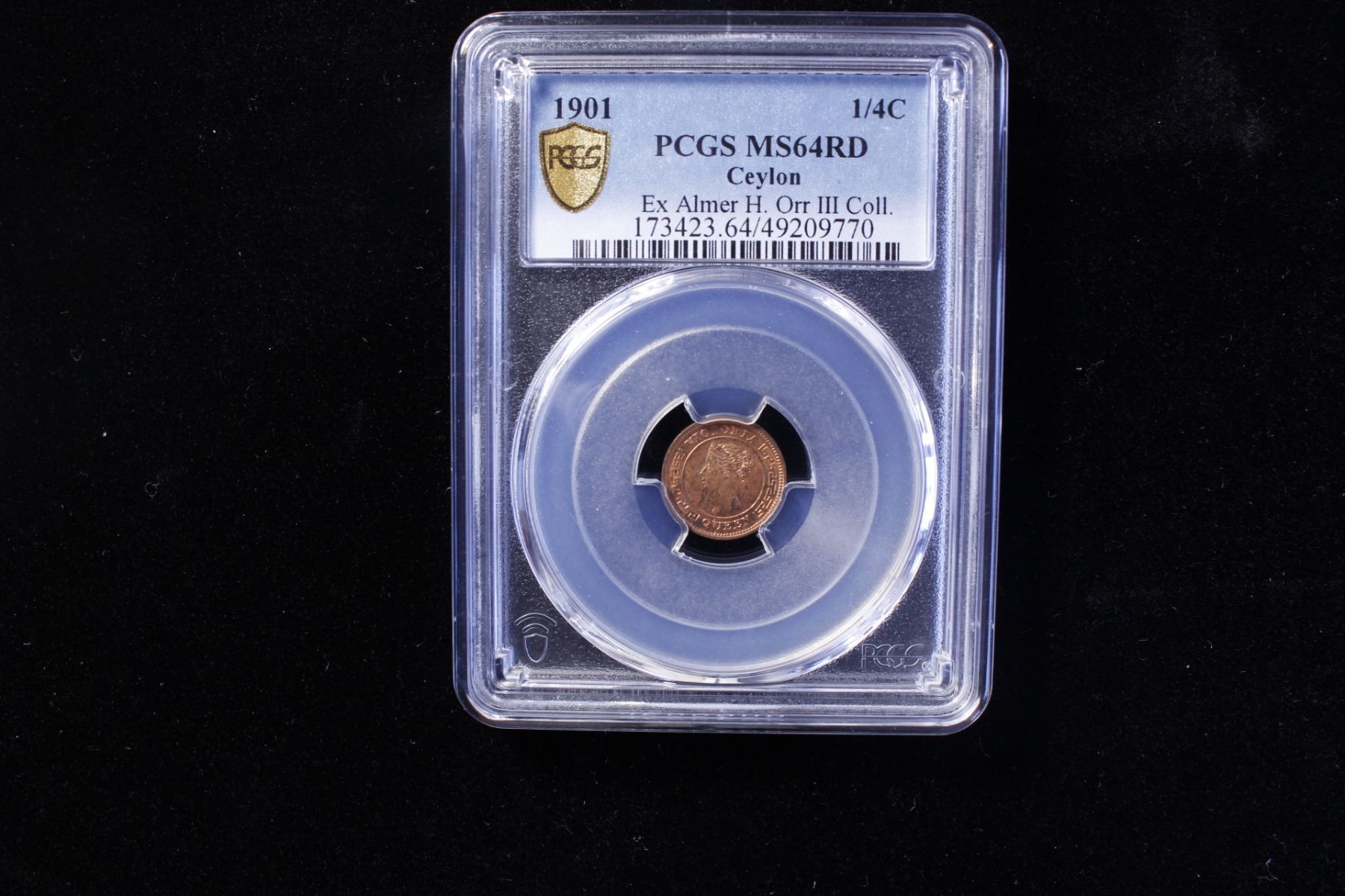 CEYLON: Victoria, 1837-1901, AE 1/4 cent, 1901, KM-90, Y-4, a wonderful red lustrous example! PCGS graded MS64 RD, ex Almer H. Orr III Collection.
