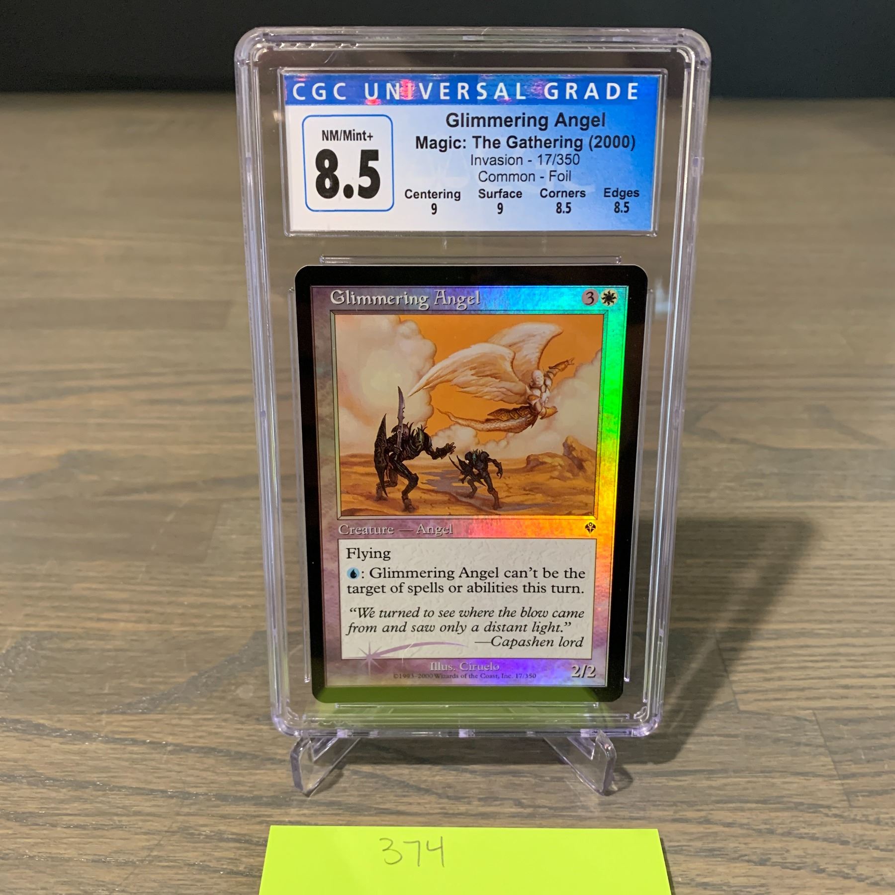 CGC 8.5 NM/Mint Glimmering Angel Magic the Gathering (2000) Invasion set Foil card. We are a veteran owned company. Please look at the pictures carefully to determine what you believe the condition of collecitible is. We are currently accepting consignments. Email us a aeronhouse1994@gmail.com or visit our website, www.ahauctionhouse.com. We are currently seeking Star Wars related consignments.
