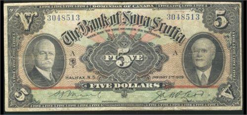 CH-550-34-02, 1929 $5 The Bank of Nova Scotia. A nice example in F to VF. #30448513