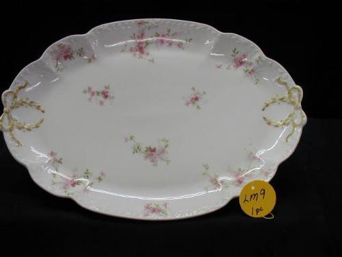 CH. FIELD HAVILAND LIMOGES SM PINK FLORAL W/GOLD WREATH HEART RELIEF AROUND EDGE (1) 15 5/8in X 11 1/8in OVAL PLATTER