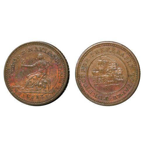 CH#NS-18A Br:964 Pure copper preferable. Farthing 1813 Choice AU