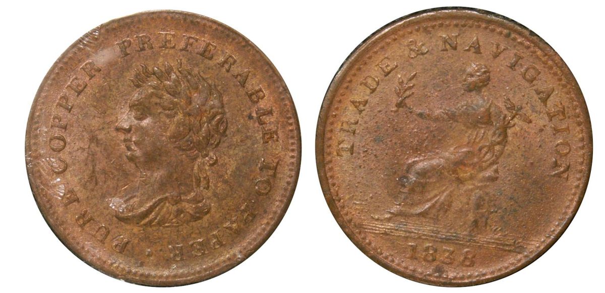 CH#NS-22; Br 967 Trade & navigation 1838 Choice Unc. Lots of luster