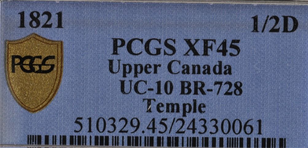 CH UC-10 - BR 728, 1821 Upper Canada Commercial Change Token, PCGS XF45 Ex:Temple.