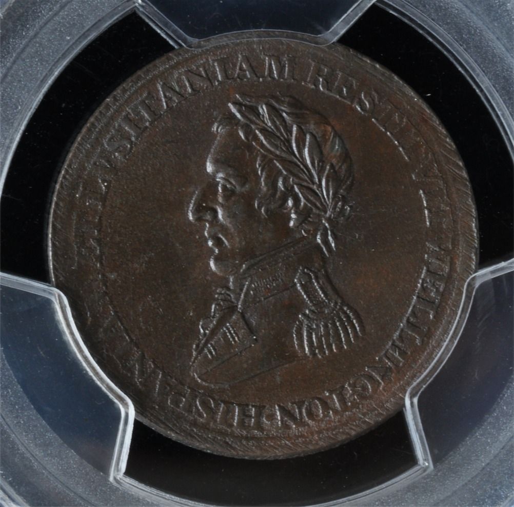 CH WE-11B4 - BR 986, Wellington Lower Canada Half Penny Token (c.1812), PCGS UNC Details. Ex:Temple.